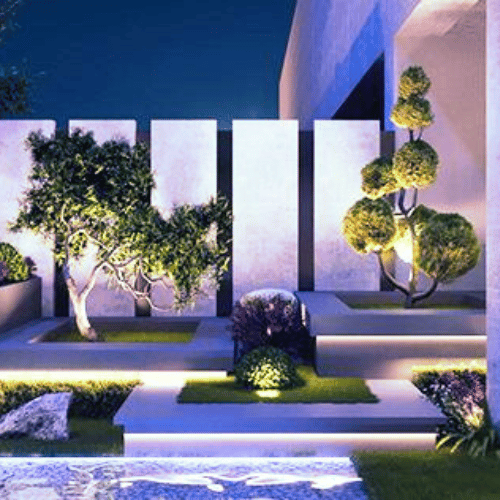 Innovative lighting solutions to highlight architectural features and provide safety, charm, and ambiance.
